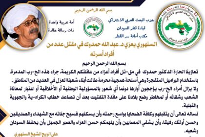 السنهوري يعزي د. عبد الله حمدوك في مق-تل عدد من أفراد أسرته…