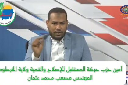 أمين حزب حركة المستقبل للإصلاح والتنمية ولاية الخرطوم المهندس مصعب محمد عثمان…