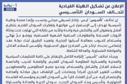 الإعلان عن تشكيل الهيئة القيادية لتحالف السودان التأسيسي…