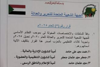 الجبهة الشعبية المتحدة للتحرير والعدالة قرار تكليف المكتب التنفيذي للجبهة الشعب…