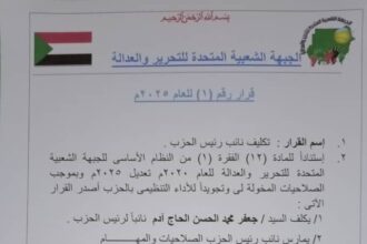 الجبهة الشعبية المتحدة للتحرير والعدالة قرار تعيين نائب الرئيس للجبهة الشعبية المتحدة…