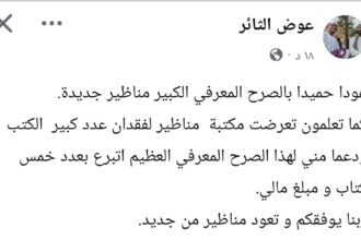 الحبيب عوض الثائر يتبرع بعدد 5 كتب ومبلغ مالي لصالح مشروع إعادة…