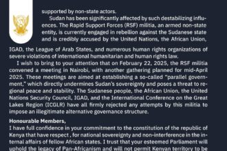 On the Hosting of the Rapid Support Militia meetings in Nairobi, a…