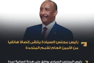 ⭕️ رئيس مجلس السيادة يتلقى إتصالاً هاتفياً من الأمين العام للأمم المتحدة…