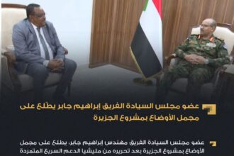عضو مجلس السيادة الفريق إبراهيم جابر يطّلع على مجمل الأوضاع بمشروع الجزيرة بور…
