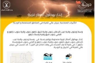 الأرصاد تصدر إنذار برتقالي بخطورة عالية بورتسودان 5-10-2025 (سونا)- أصدرت الهيئة العامة…