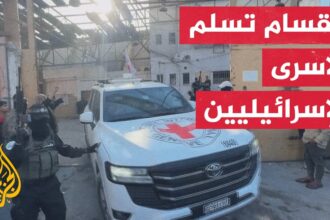 مراسل الجزيرة مؤمن الشرافي يرصد اللحظات الأولى لتسليم الدفعة الأولى من الأسرى ال…