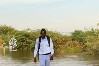 مراسل الجزيرة هيثم أويت داخل مياه فيضان نهر النيل بمنطقة ود رملي…