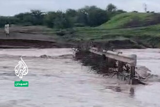 انهيار جسر في مدينة أبو حجار بولاية سنار يربط المدينة بالأحياء الشرقية…