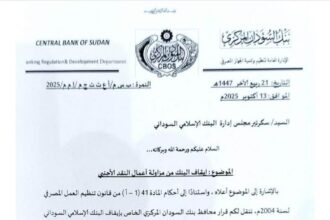 قرر بنك السودان ايقاف البنك الاسلامي السوداني عن مزاولة اعمال النقد الاجنبي…
