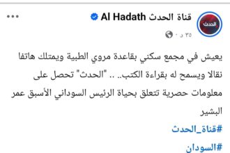 "التقرير الذي بثته قناة العربية الحدث عن مكان الرئيس السابق عمر البشير…