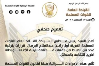 بسم الله الرحمن الرحيم القيادة العامة للقوات المسلحة تعميم صحفي الإثنين ١٨ أغس…