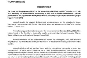 مجلس السلم والأمن الإفريقي يصدر بياناً يدين ويرفض فيه قيام حكومة موازية…