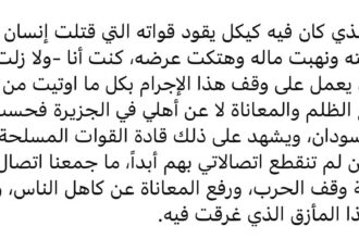 شهادة موثقة حول فظائع وجرائم الجنجويد القتلة في ولاية النيل الأبيض.. حسبنا…