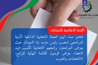 بناء على جدول العملية الانتخابية تعلن لجنة الانتخابات بحزب بناء السودان قفل باب…