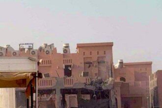 لقطات مصورة تظهر لحظات الاستهداف الإسرائيلي للمجمع السكني الذي يضم مكتب قيادات…