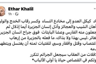 أبوها خليل مجرم حرب، وعمها جبريل مجرم حرب… طوال الـ 23 عامًا الماضية، كان عمها ي…