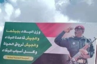في الصورة يظهر المتمرد “كوبرا” و هو يتوسط لافتة المؤسسة الوطنية التابعة للجيش. …