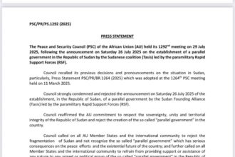 عاجل:الاتحاد الإفريقي يدين تشكيل حكومة موازية في السودان في اجتماعه رقم 1292…