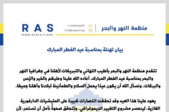 بيان تهنئة بمناسبة عيد الفطر المبارك تتقدم منظمة النهر والبحر بأطيب التهاني…