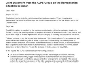 البيان يطالب أطراف النزاع بالتحرك العاجل لحماية المدنيين والسماح بوصول المساعدات الإنسانية…