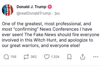 #ترمب يشيد بالمؤتمر الصحافي ويصفه بأحد “أعظم المؤتمرات وأكثرها احترافية ” ويدعو …