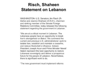 بيان من السيناتور الجمهوري جيم ريش والديمقراطية جين شاهين عن #لبنان يقول: “الرئي…