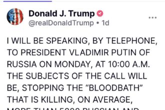 #ترامب يعلن بعد اتصاله بكل من بوتين وزيلينسكي عن بدء المفاوضات فورا” بين الطرفين…
