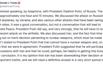 منشور ل #ترمب مشبع بالتفاصيل عن مكالمة جمعته ببوتين وفيها: كانت جيدة لكنها لن ت…