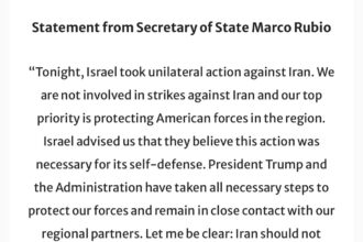 بيان من وزير الخارجية الاميركي “الليلة، اتخذت #إسرائيل إجراءً أحاديًا ضد #إيران…