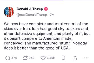 #ترامب يقول : لدينا سيطرة كاملة وتامة على اجواء #إيران …