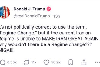 ترجمة التغريدة: “من غير الملائم سياسياً استعمال تعبير تغيير النظام، لكن ان كان …