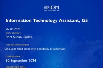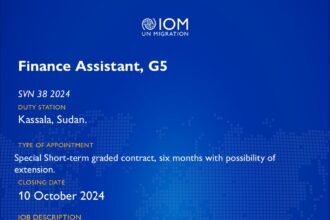 Vacancy Opportunity!!! IOM is looking for a Finance Assistant , G5, in Kassala,…