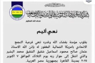 الله.. الوطن.. الديمقراطية التجمع الاتحادي نعي أليم بمزيد من الحزن والأسى، ينعى…