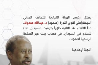 نداء سلام السودان يطلق رئيس الهيئة القيادية للتحالف المدني الديمقراطي لقوى الثورة…
