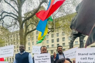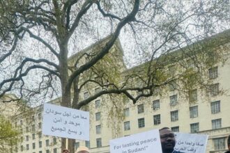 تظاهرة في لندن دعماً للمؤتمر المزمع انعقاده حول السودان ولرفض الحرب وللمطالبة …