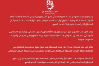يستنكر حزب بناء السودان بشدة القرار التعسفي الذي أصدره رئيس مجلس السيادة،…
