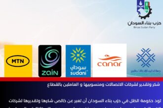 شكر وتقدير لشركات الاتصالات ومنسوبيها تود حكومة الظل في حزب بناء السودان…