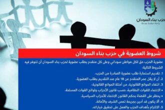 شروط العضوية في #حزب_بناء_السودان عضوية الحزب حق لكل مواطن سوداني وعلى كل متقدم…