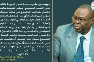 حريصون على وحدة قوى الحرية والتغيير في الاتجاه الصحيح، وعلى تقوية مكوناتها والن…