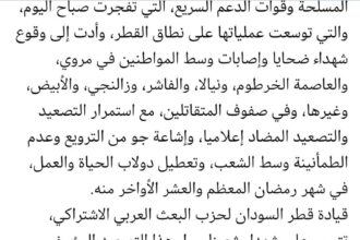 بسم ألله الرحمن الرحيم تصريح صحفي حول الانفلات الأمني بدار فور دخلت…