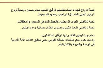 بسم الله الرحمن الرحيم رسالة الرفيق الأستاذ شمس الدين أحمد صالح عضو قيادة القطر…