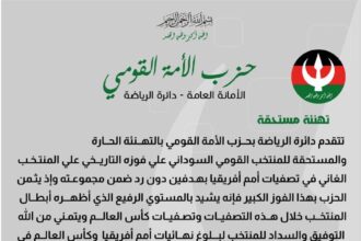 بسم الله الرحمن الرحيم حزب الأمـــــة القومي الأمــــــانة العــــــامة *بيان…