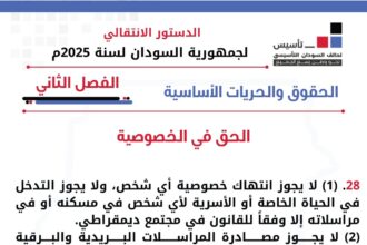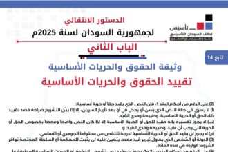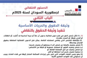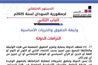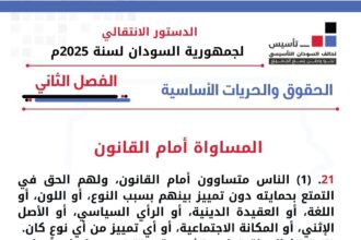 الدستور الانتقالي لجمهورية السودان لسنة 2025 م الباب الثاني وثيقة الحقوق والح…
