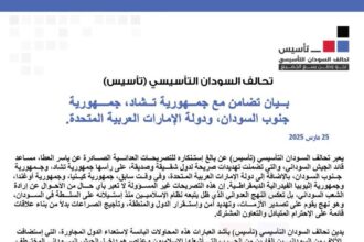 تحالف السودان التأسيسي (تأسيس) بيان تضامن مع جمهورية تشاد، جمهورية جنوب السودان،…
