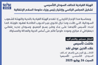 الهيئة القيادية لتحالف السودان التأسيسي تشكيل المجلس الرئاسي وإختيار رئيس وزراء حكومة…