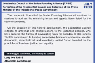 Leadership Council of the Sudan Founding Alliance (TASIS) Formation of the Presidential…