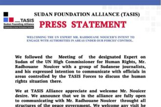 Sudan Founding Alliance (TASIS) Press Statement Welcoming the UN Expert Mr. Rahdouane…