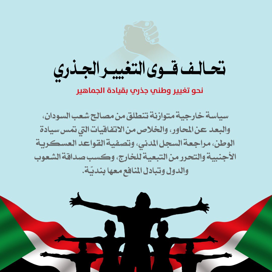سياسة خارجية متوازنة تنطلق من مصالح شعب السودان، والبعد عن المحاور والخلاص من الاتفاقيات التي تمس سيادة الوطن،مراجعة السجل المدني،وتصفية القواعد العسكرية الأجنبية والتحرر