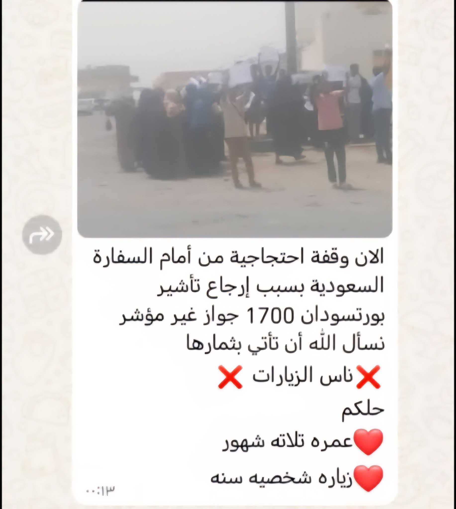 في ظل الوضع المعقّد والصعب ده قرّرت الأسر المتضررة إنها تعمل ( وقفة إحتجاجية ) أمام ( السفارة السعودية في بورتسودان ) على أساس مقابلة ( القنصل ) أو ( نائب القنصل ) .. لمطالبتهما بالتدخُّل لحل مشكلة الجوازات الاترفضت تأشيرتها ..